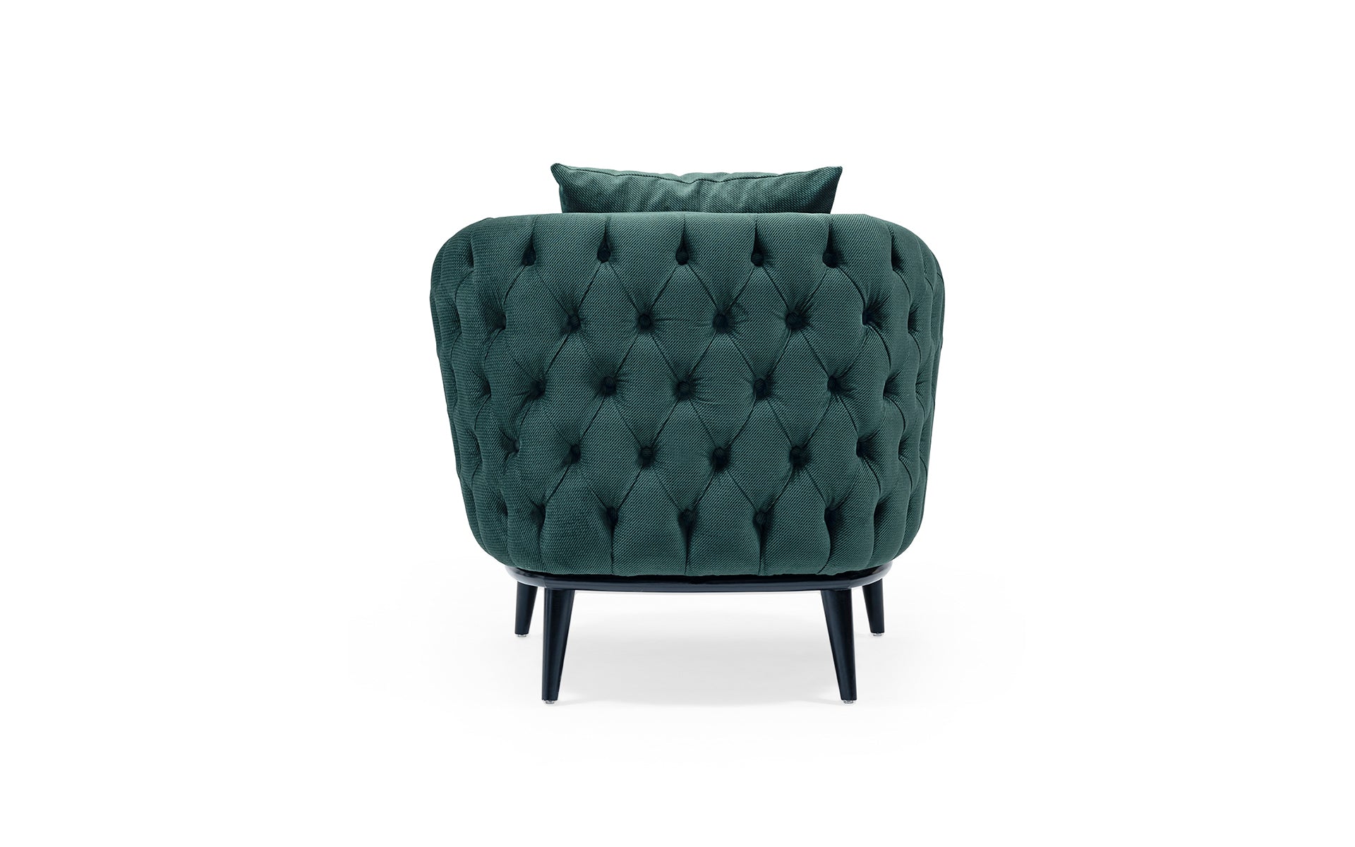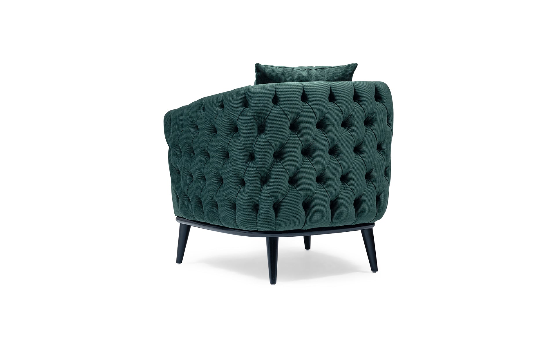 With its deep button-tufted upholstery and rounded silhouette, it radiates elegance from every angle — transforming any space into a statement of refined comfort.