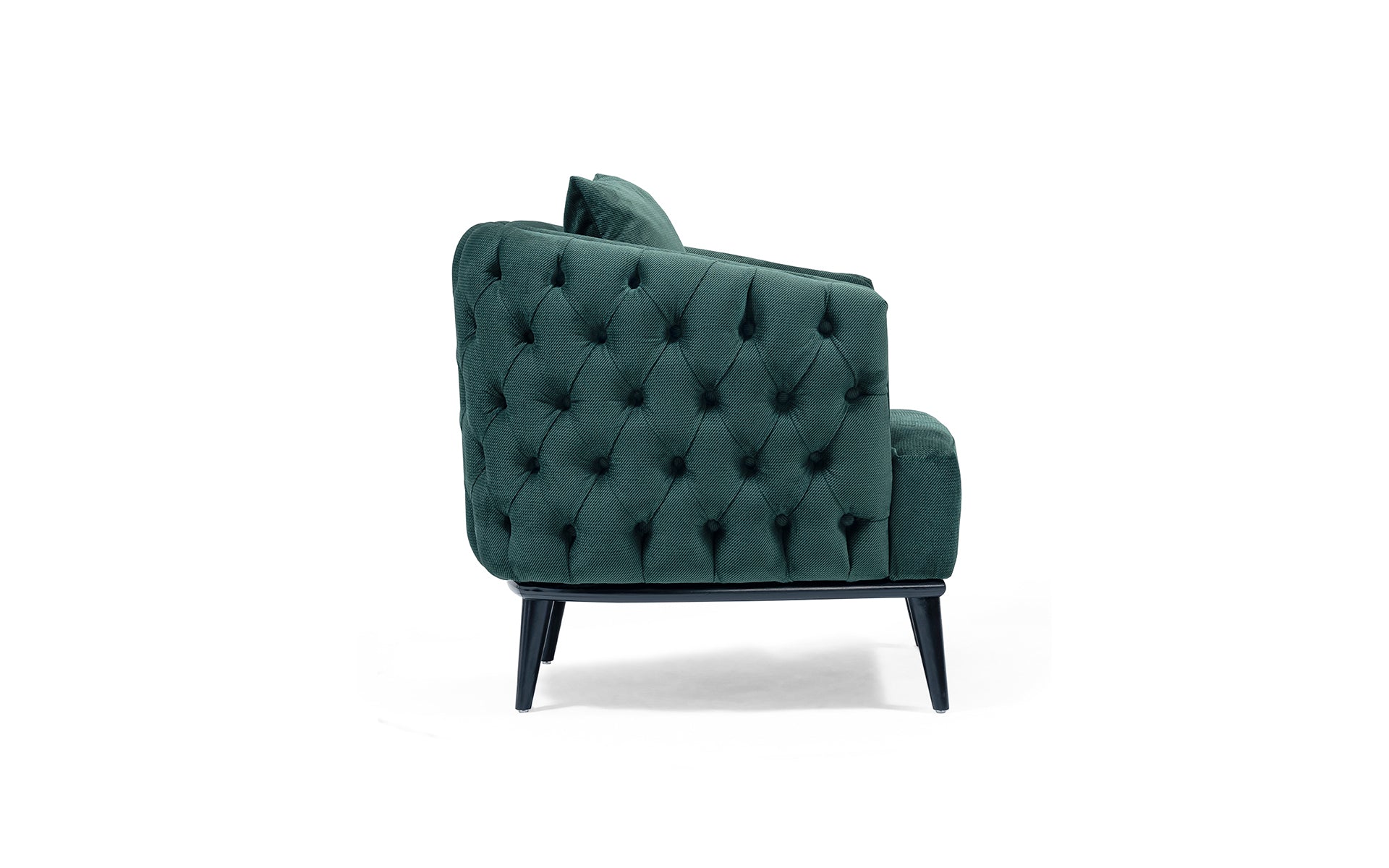 Wooden legs + High-density foam + Button-tufted premium fabric upholstery