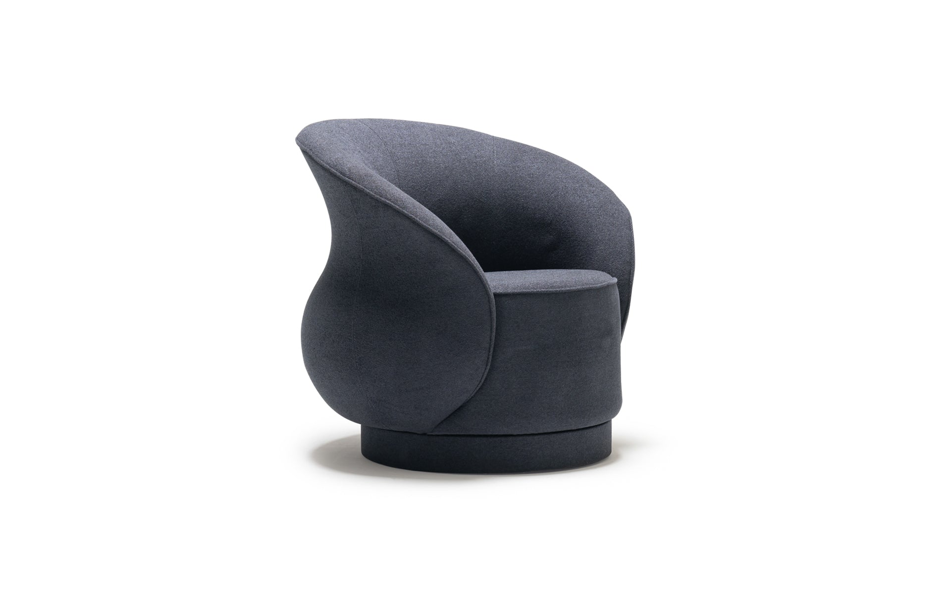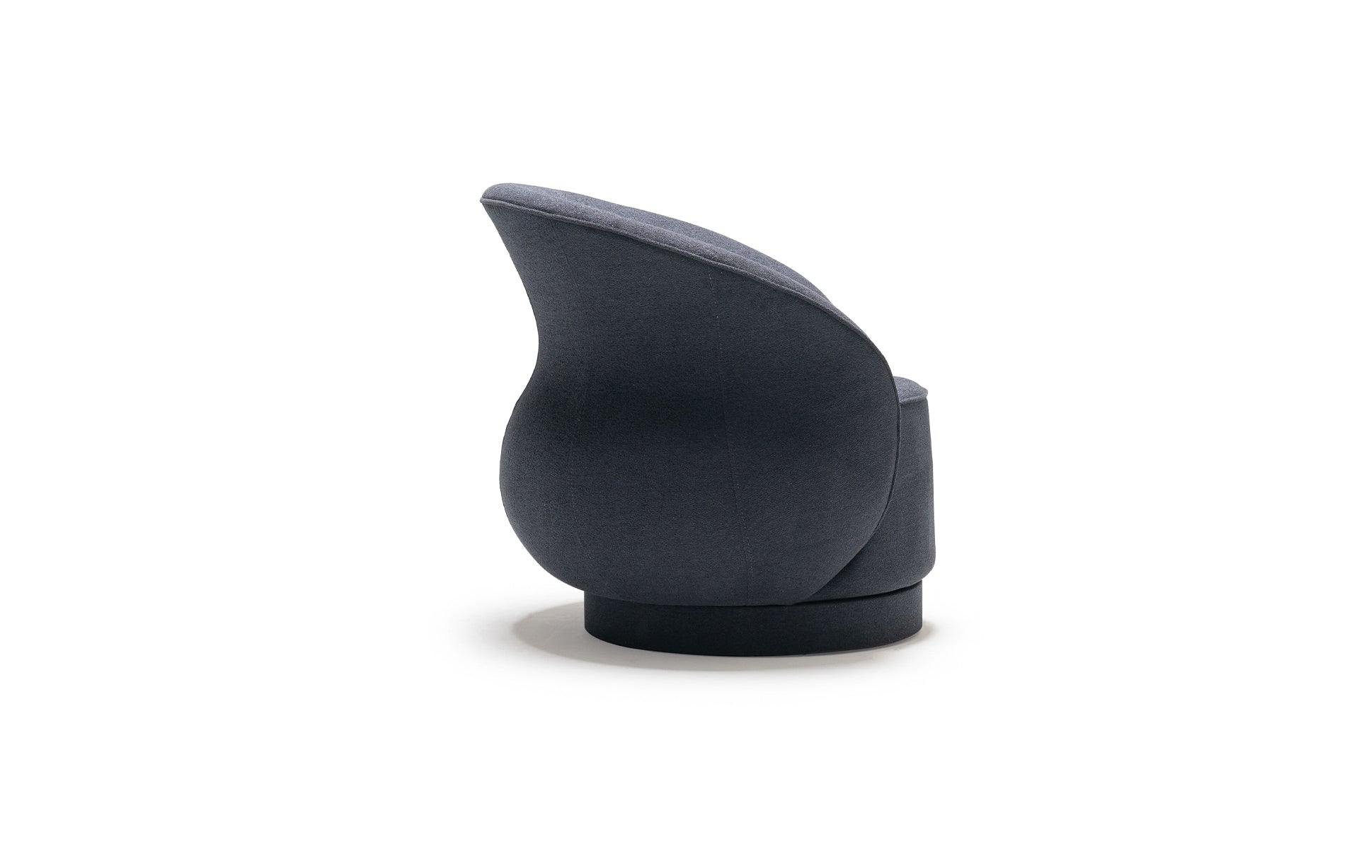 The sculptural shape embraces the user, while its 360° swivel base adds versatility and ease to any space.
