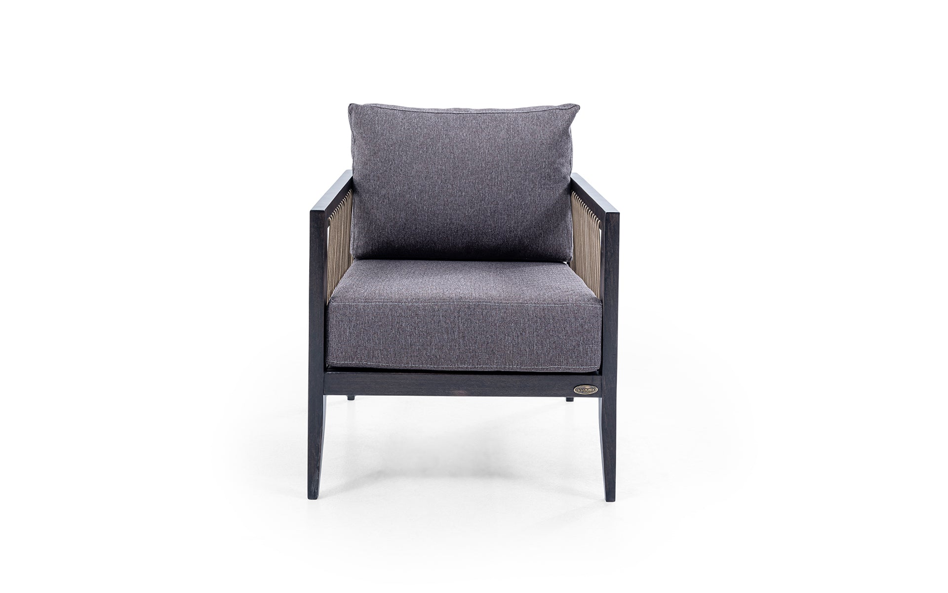 Solid Wood Frame + Rope Detailing + High-Density Foam + Fabric Upholstery