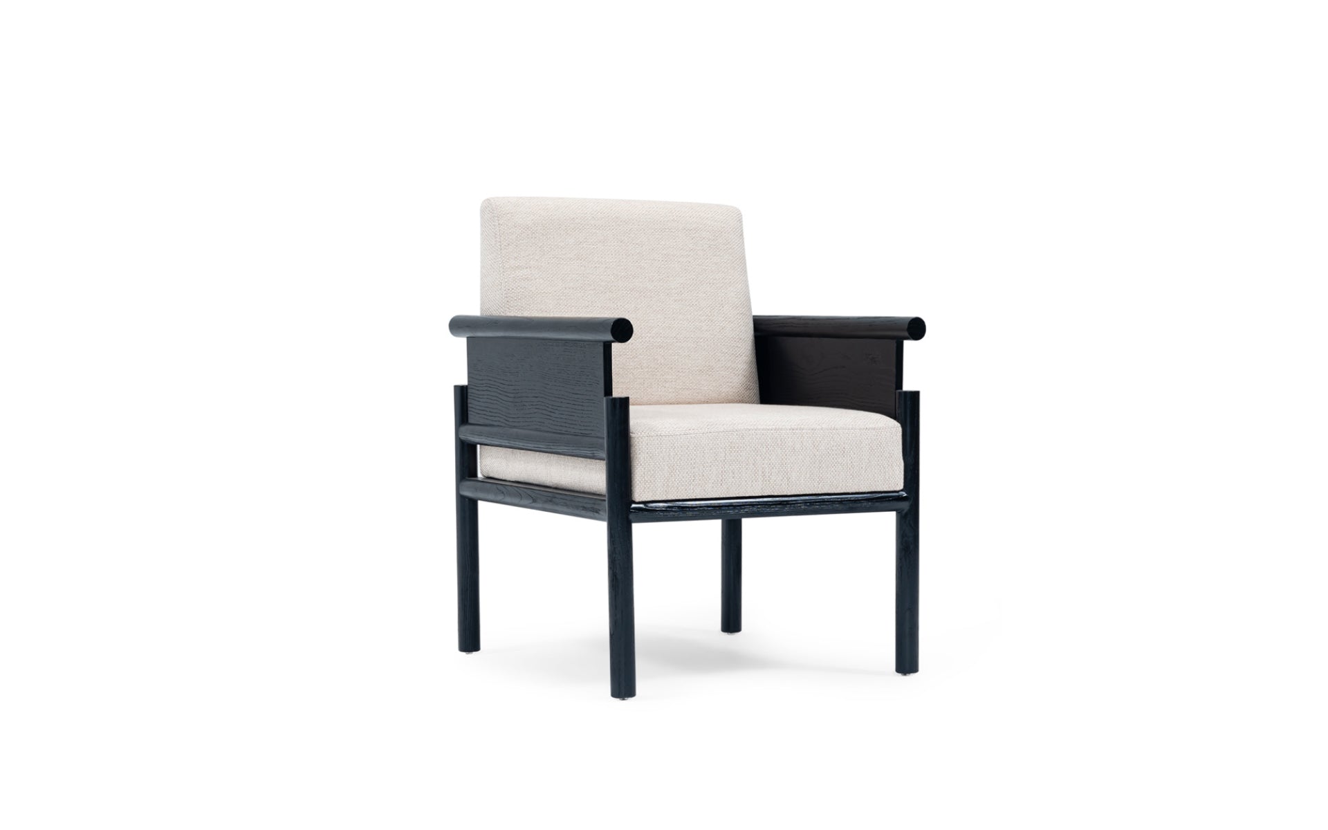 Featuring a precisely crafted wooden frame, tubular arm details, and a generously cushioned seat, Frida merges architectural clarity with inviting comfort.