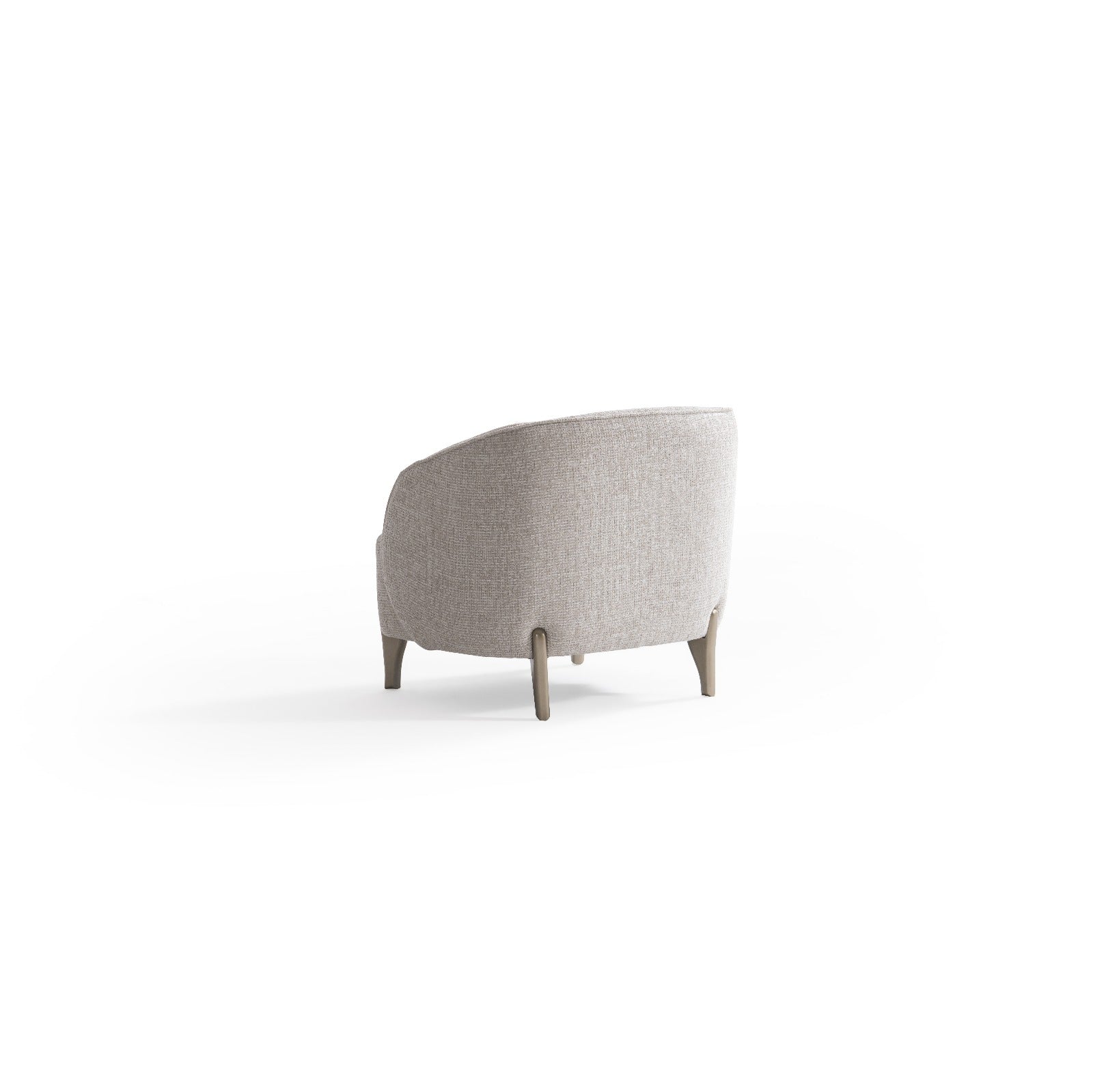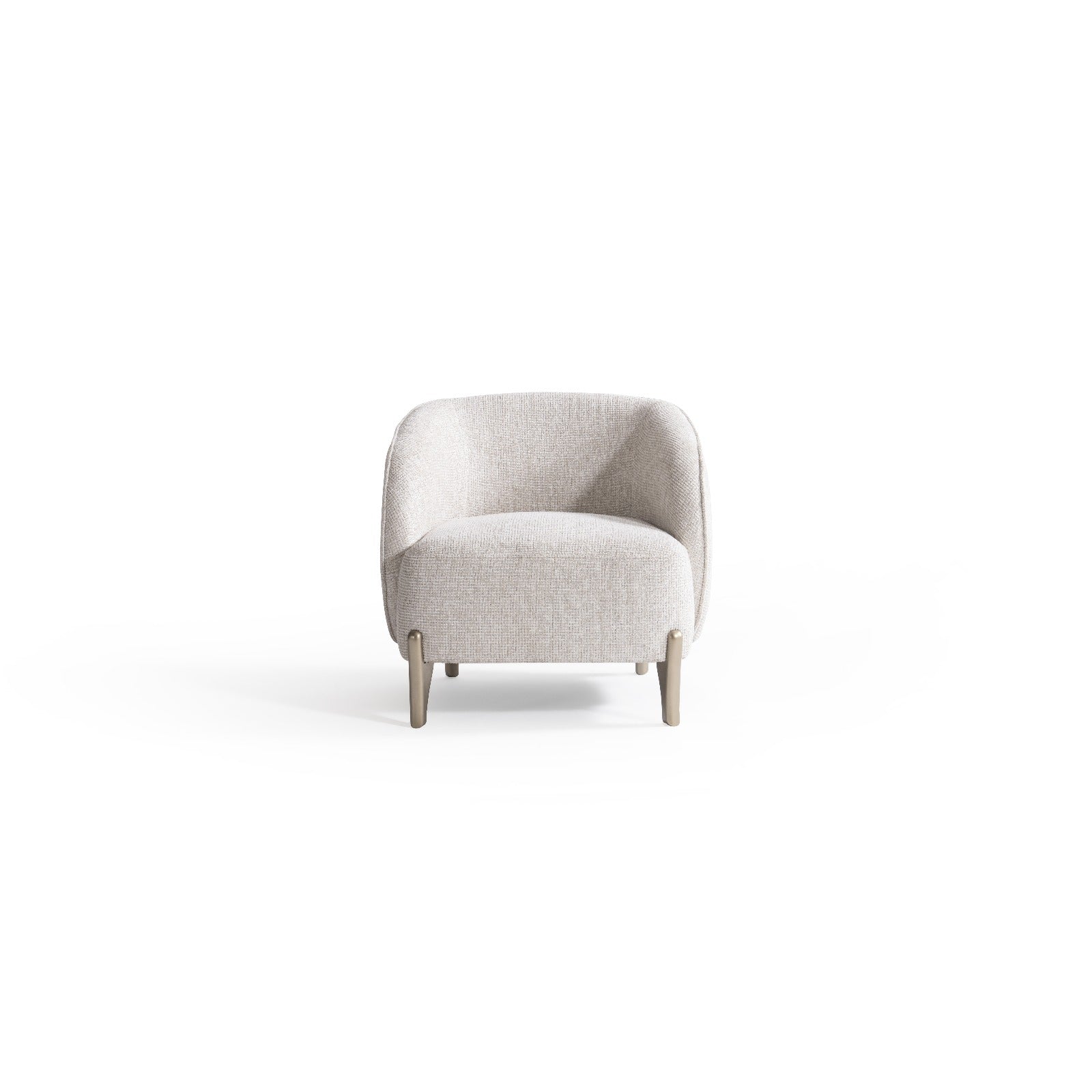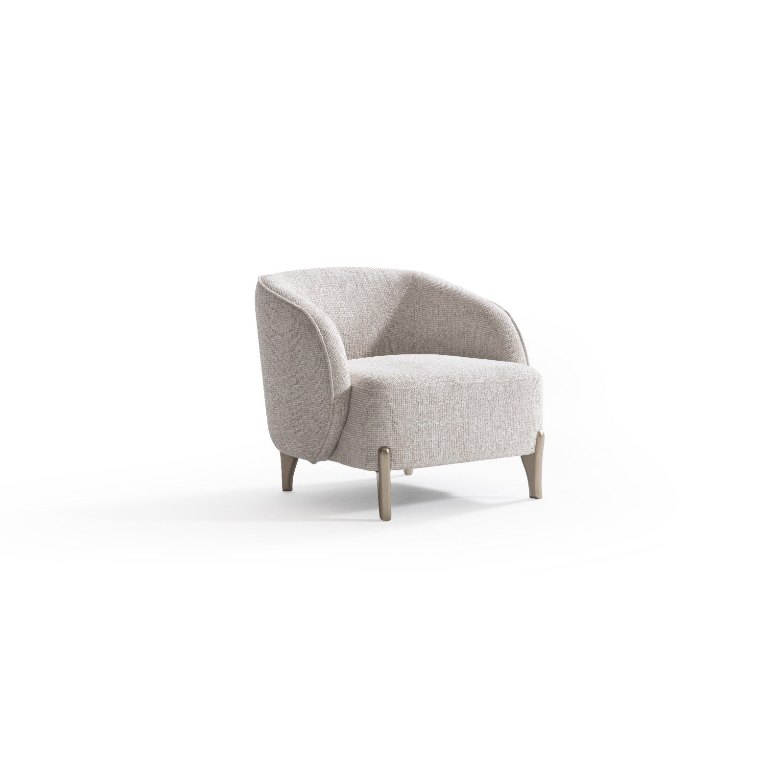 Its soft curves and fully upholstered body create a sophisticated yet cozy atmosphere.