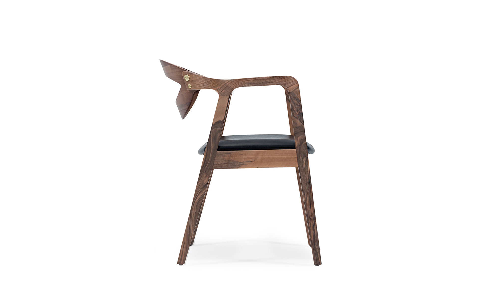 Bring timeless elegance into your home with this Modern Walnut Dining Chair. Crafted from solid walnut wood, this chair blends mid-century modern design with exceptional durability. The smooth curved backrest and sculpted armrests provide ergonomic comfort, while the padded black leather seat ensures a luxurious seating experience.