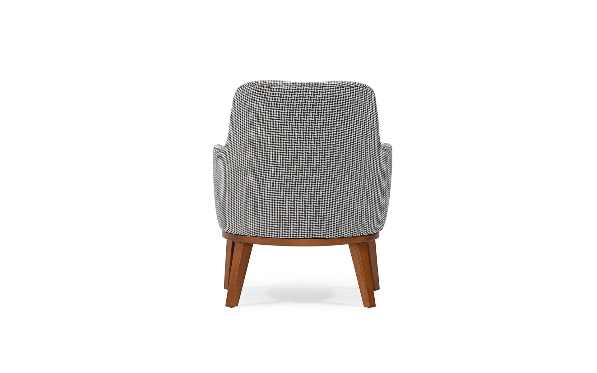 Its gracefully curved backrest and gently flared armrests create an inviting silhouette, offering both style and ergonomic support.